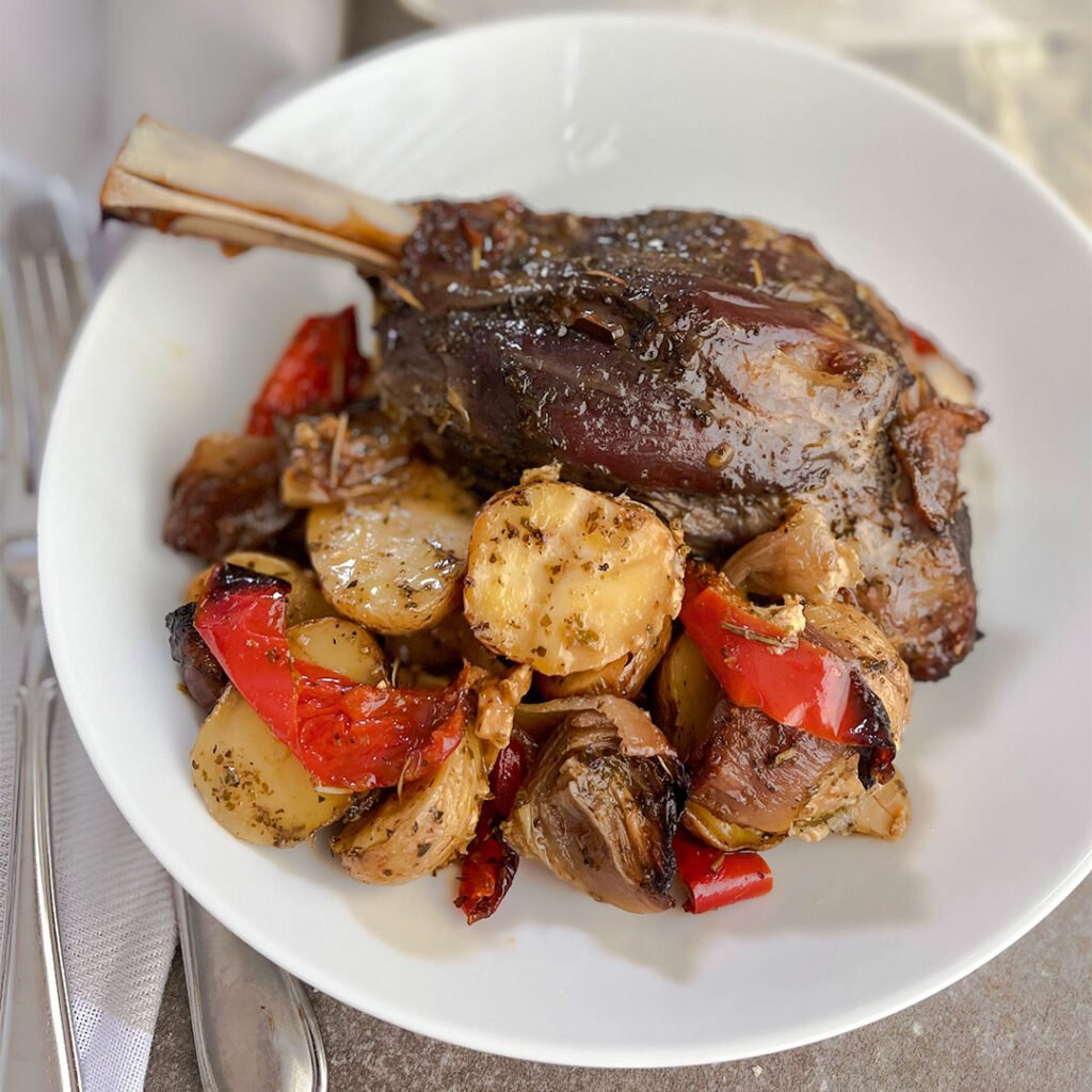 Slow-cooked lamb (or goat) often sealed in parchment or cooked underground in a pit (historically for the klephts, mountainous rebels). The flavours are rich, tender and herb-laden. Greekality