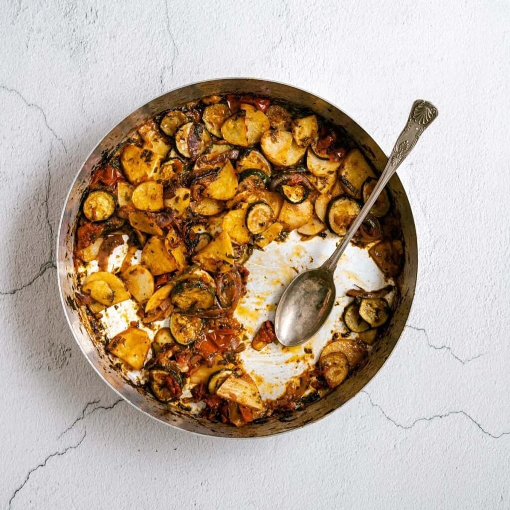 Briam reflects the idea of “ladera” (cooked in olive oil) — something deeply Mediterranean.