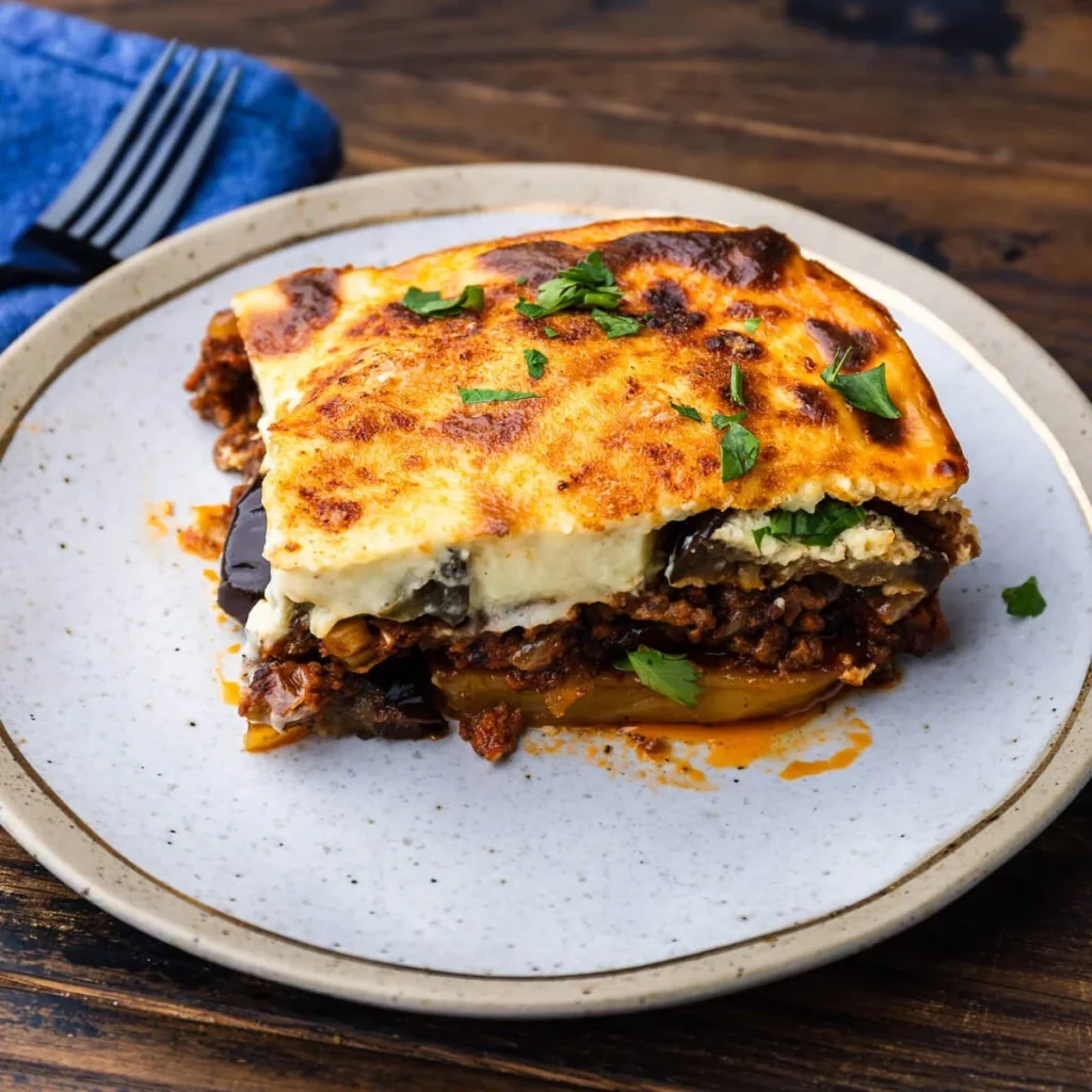 Arguably the most famous “traditional Greek dish,” moussaka is a layered casserole made of eggplant (often potatoes too), minced meat in tomato sauce, and a creamy béchamel topping. Its modern form was popularised in the early 20th century when chefs blended French techniques and Greek ingredients. Greekality+1